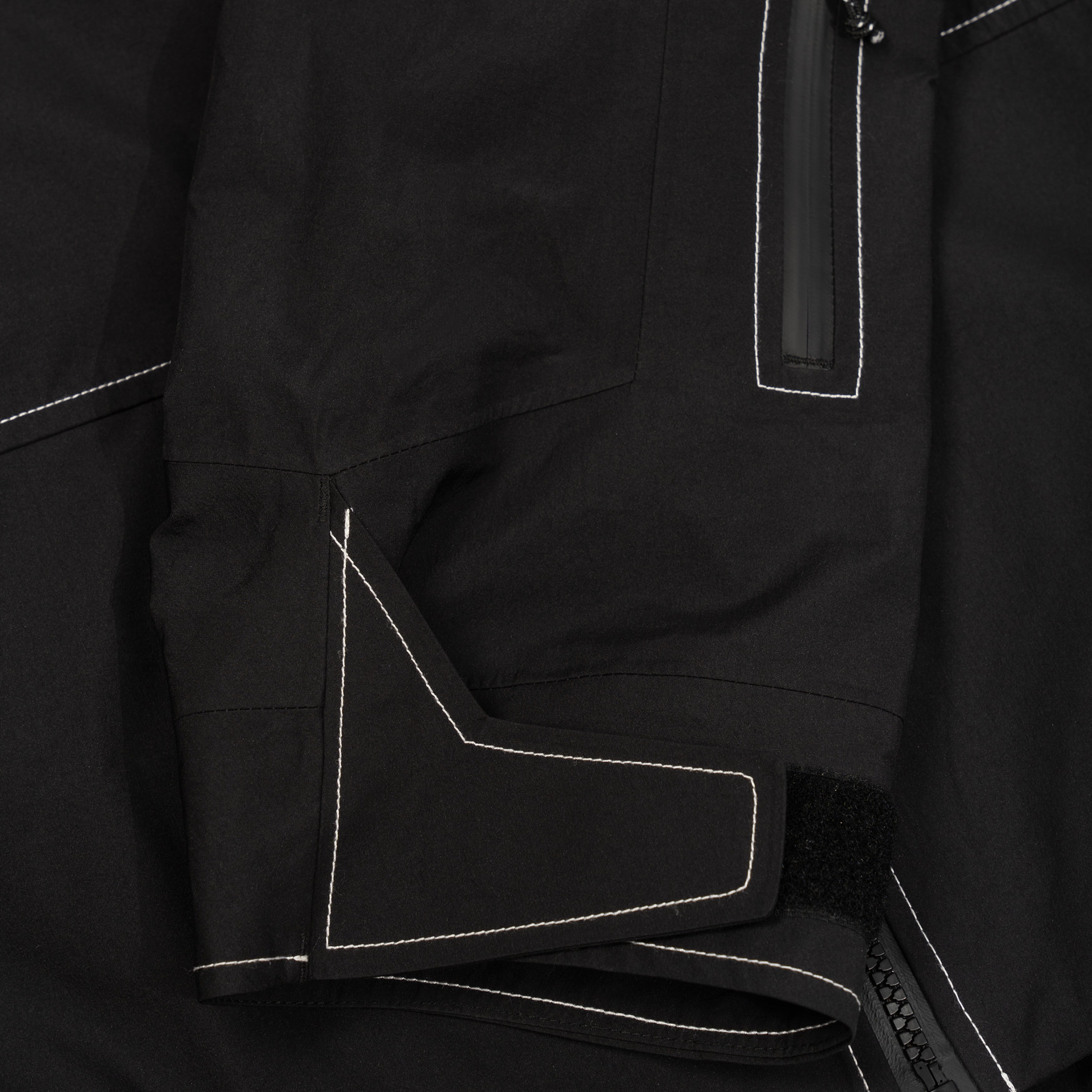 耐水圧は20,000mm とアウトドア生地の中でも高基準の数値の素材です。汗をかいても服の内部がベタつくことなく快適さをキープします。独特のシルエットがジェンダーレスな雰囲気で男女関係なくコーディネートいただけます。