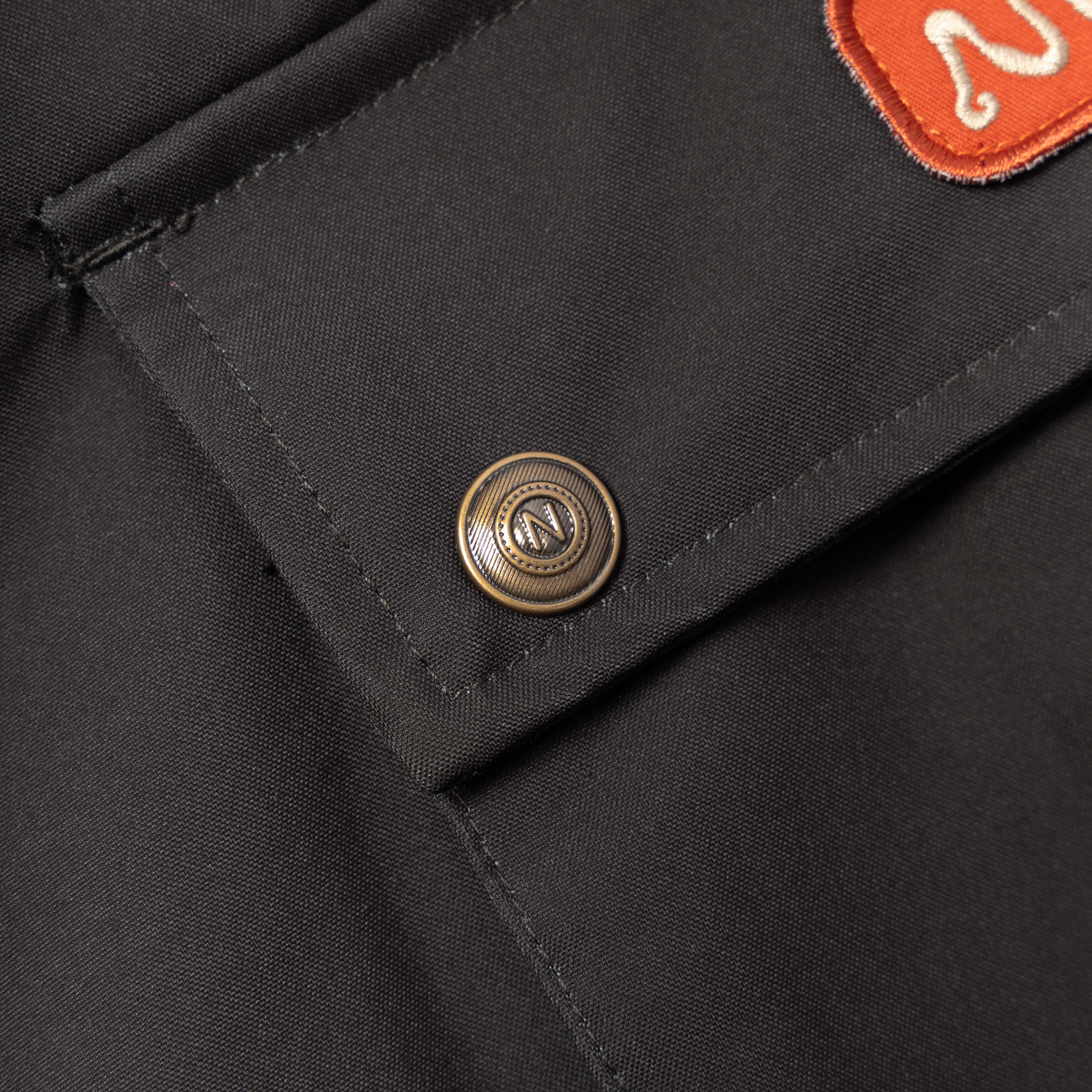 デザインはもちろん、3レイヤーの生地はストレッチが効いてて動きやすくバックカントリーへ行ける機能を持ちながら、彼らしいカジュアルなデザインを残した。